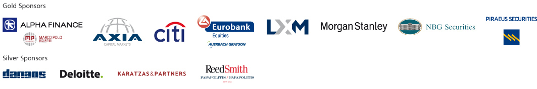 Χρυσοί υποστηρικτές του φετινού Forum ήταν τέσσερεις από τις μεγαλύτερες ελληνικές χρηματιστηριακές εταιρείες, η Alpha Finance και ο συνεργάτης της Marco Polo Securities, η Eurobank Equities και ο συνεργάτης της Auerbach Grayson, η NBG Securities και η Piraeus Securities καθώς και οι διεθνείς επενδυτικές τράπεζες Citi και Morgan Stanley, ο διεθνής Broker-dealer AXIA Capital Markets και ο διεθνής χρηματοοικονομικός οργανισμός LXM Group.