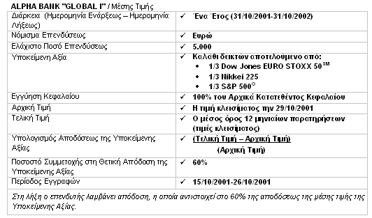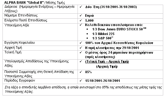 H Alpha Bank εκδίδει τις σειρές επενδυτικών προϊόντων ALPHA BANK CAPITAL GUARANTEE και ALPHA BANK CAPITAL GUARANTEE Μεγίστης Αποδόσεως. Τα πιο πάνω προϊόντα απευθύνονται σε επενδυτές οι οποίοι επιθυμούν να διαφοροποιήσουν μέρος του χαρτοφυλακίου τους με διασφάλιση του αρχικά κατατεθειμένου κεφαλαίου τους. Προσφέρουν την προοπτική υψηλών αποδόσεων συνδεδεμένων με τη διακύμανση χρηματιστηριακών δεικτών της παγκόσμιας κεφαλαιαγοράς ή συναλλαγματικών ισοτιμιών.