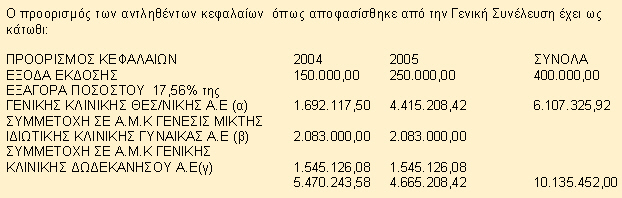 Οι νέες μετοχές να έχουν δικαίωμα απόληψης μερίσματος από τα κέρδη χρήσεως 2004