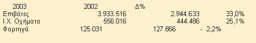 Συγκεκριμένα τα αποτελέσματα του Ομίλου για την χρήση του 2003 σε σύγκριση με το προηγούμενο έτος ήταν: