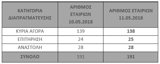 Η μεταφορά των μετοχών θα ισχύσει από τη συνεδρίαση της Παρασκευής 11 Μαΐου 2018.