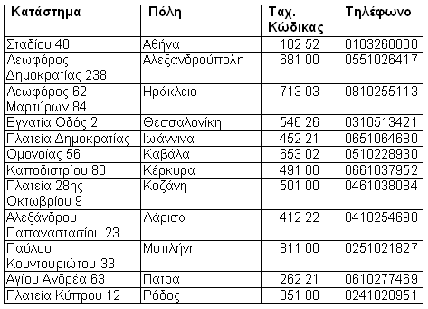 (β)στα ακόλουθα καταστήματα της ALPHA BANK A.E.: