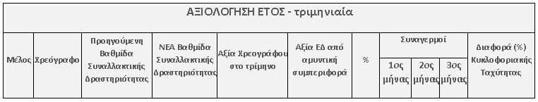 Πλέον όλα τα στοιχεία αξιολόγησης θα αναφέρονται αναλυτικά σύμφωνα με τον κατωτέρω πίνακα.