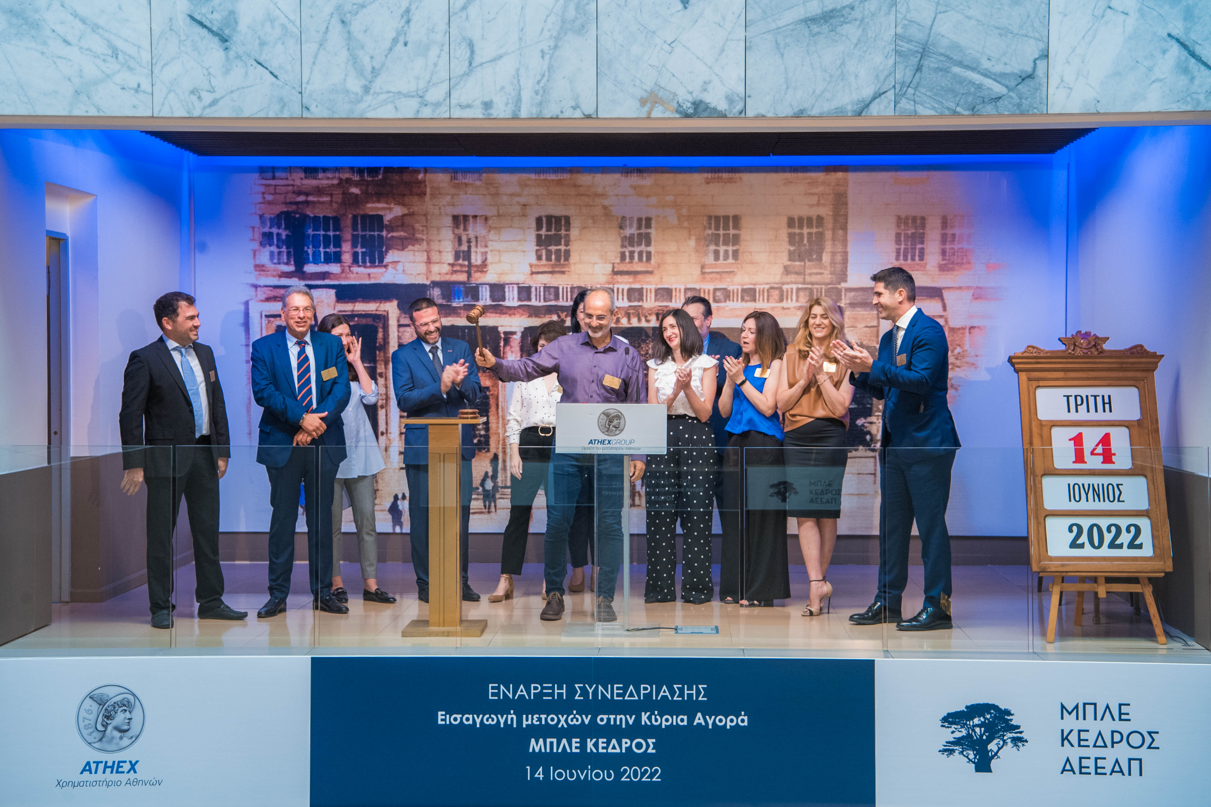 To Χρηματιστήριο Αθηνών υποδέχθηκε σήμερα την Διοίκηση και στελέχη της ΜΠΛΕ ΚΕΔΡΟΣ ΑΕΕΑΠ με αφορμή την εισαγωγή προς διαπραγμάτευση στην Κύρια Αγορά των 43.200.000 μετοχών της εταιρείας. Ο κ. Mike Eυμορφίδης κήρυξε την έναρξη της σημερινής συνεδρίασης του Χρηματιστηρίου.