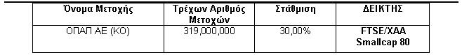 Η μετοχή της εταιρίας ΟΠΑΠ ΑΕ θα συμμετέχει στη σύνθεση του Δείκτη FTSE/XAA SMALLCAP 80 από τις 29 Ιουλίου 2002 με στάθμιση 30%.