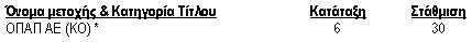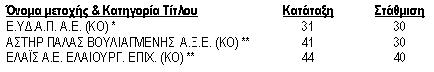 * Η εταιρεία μετακινήθηκε από τον FTSE/ΧAΑ 20 Index.