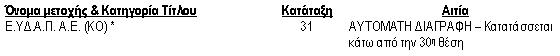 * Η εταιρεία μετακινήθηκε από τον Δείκτη FTSE/ΧAΑ Smallcap 80.