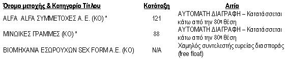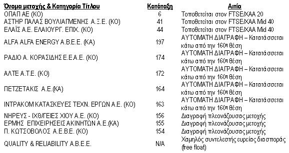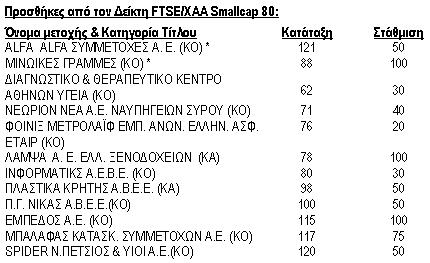 ** Οι εταιρείες μετακινήθηκαν από τον FTSE/ΧΑΑ Smallcap 80.