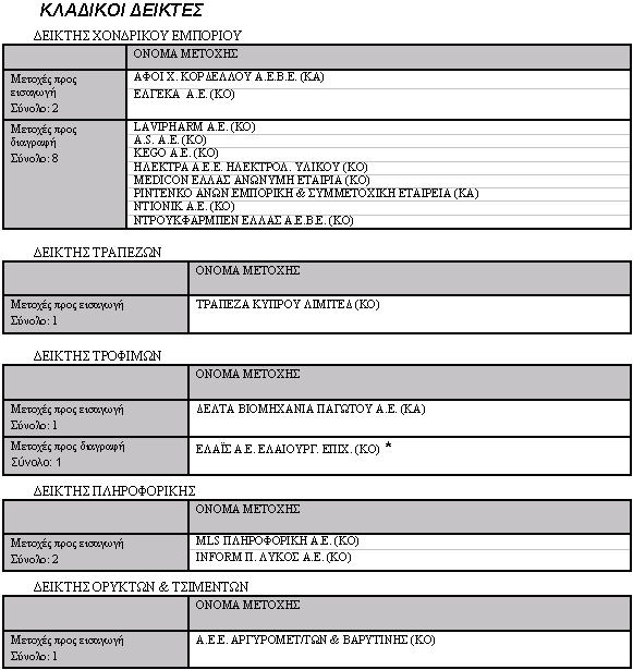 Κατεβάστε την νέα σύνθεση των δεικτών όπως θα ισχύσουν από 02/06/2003.