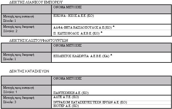Κατεβάστε την κατάταξη όλων των μετοχών που δύνανται να συμμετέχουν σε δείκτες αγοράς & κλαδικούς.