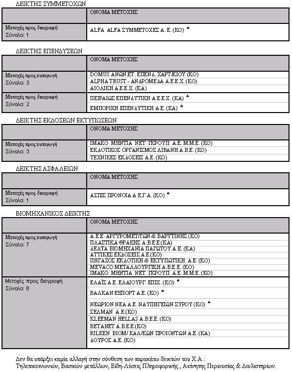 Εξαμηνιαία τακτική αναθεώρηση Δεικτών Χ.Α.
