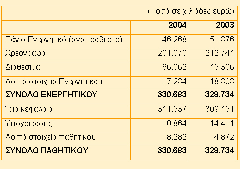 Ακολούθως, παρατίθεται συνοπτικά η ενοποιημένη οικονομική κατάσταση του Ομίλου ΕΧΑΕ στα τέλη του εννεαμήνου 2004: