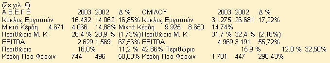 Για την χρήση 2004 ο Όμιλος προβλέπει επίσης υψηλούς ρυθμούς ανάπτυξης και θετικά αποτελέσματα που αναμένεται να πραγματοποιηθούν με την περαιτέρω ανάπτυξη του διεθνούς εμπορικού του δικτύου και με την σύναψη νέων στρατηγικών συμμαχιών τόσο σε εγχώριο όσο και σε διεθνές επίπεδο.