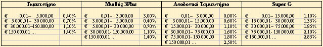 Στον καταθετικό / επενδυτικό λογαριασμό "Super G" τα επιτόκια των κλιμακίων μειώθηκαν κατά 0,40 εκατοστιαίες μονάδες, κλιμακούμενα από 1,10% μέχρι 2,85%.