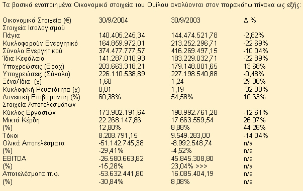 Οικονομικά αποτελέσματα 9μήνου 2004