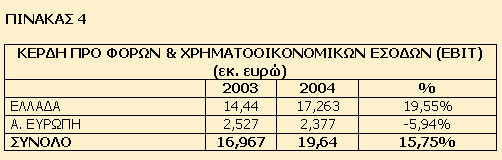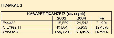 Η διοίκηση του Ομίλου για το σύνολο του 2004 εκτιμά 246 εκ. ευρώ πωλήσεις και κέρδη μετά από φόρους και δικαιώματα μειοψηφίας 15,5 εκ. ευρώ, αυξημένα κατά 6% και 35% αντίστοιχα σε σχέση με το 2003.