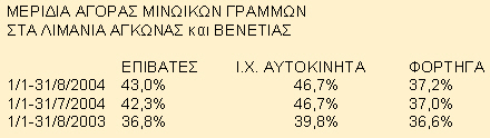 Την περίοδο 1/1-31/8/2004 οι ΜΙΝΩΙΚΕΣ ΓΡΑΜΜΕΣ παρουσιάζουν σημαντική αύξηση σε όλα τα επίπεδα κερδοφορίας, ενώ τα έσοδα κινούνται στο ίδιο επίπεδο με το αντίστοιχο διάστημα του προηγούμενου χρόνου.