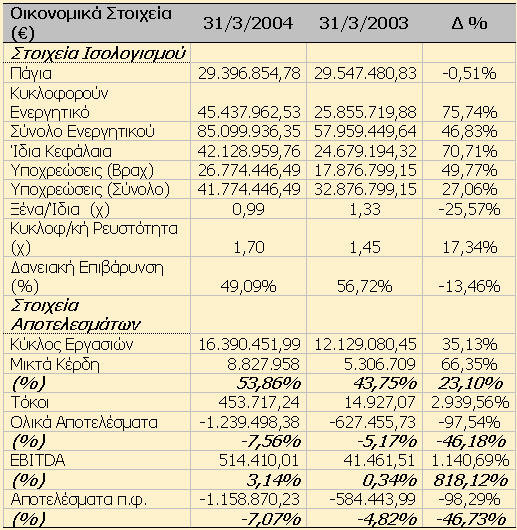Οικονομικά Αποτελέσματα Α' τριμήνου 2004