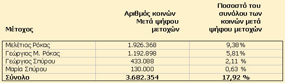Ο μέγιστος αριθμός μετοχών που δεσμεύεται να αποκτήσει ο Προτείνων ανέρχεται σε 10.477.671 κοινές ονομαστικές μετά ψήφου μετοχές, που αντιστοιχούν σε ποσοστό 51% του συνόλου των κοινών ονομαστικών μετά ψήφου μετοχών της Εταιρείας και σε ποσοστό 44,071% του συνόλου των μετοχών της Εταιρείας.
