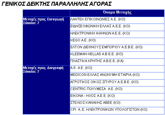 Με την νέα του σύνθεση ο Γενικός Παράλληλης Αγοράς αντιπροσωπεύει πλέον το 62.18% της Μέσης Χρηματιστηριακής Αξίας της Παράλληλης Αγοράς και το 68.57% της Αξίας Συναλλαγών άνευ πακέτων της Παράλληλης Αγοράς για την υπό εξέταση περίοδο (01/04 - 30/09).