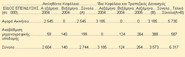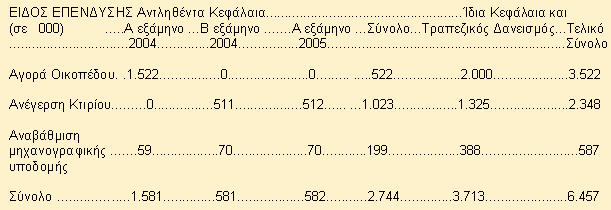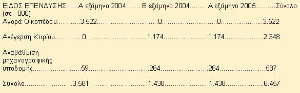 Κατόπιν των ανωτέρω με την από 01/04/2004 απόφαση του Δ.Σ, το επενδυτικό πρόγραμμα της εταιρείας τροποποιήθηκε ως εξής :