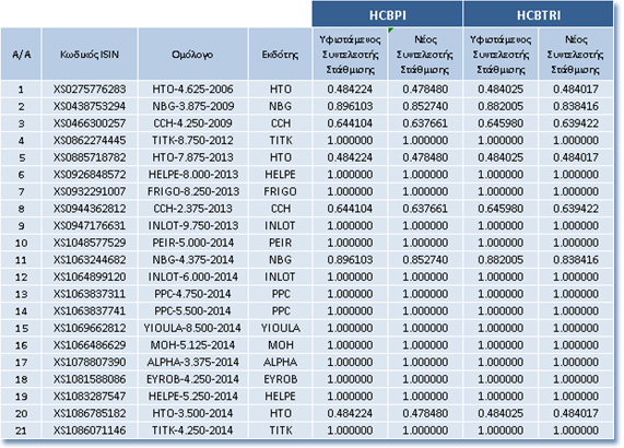 Το Χρηματιστήριο Αθηνών ανακοινώνει τους νέους συντελεστές στάθμισης των ομολόγων που συμμετέχουν στη σύνθεση των Δεικτών στο πλαίσιο των Βασικών Κανόνων.