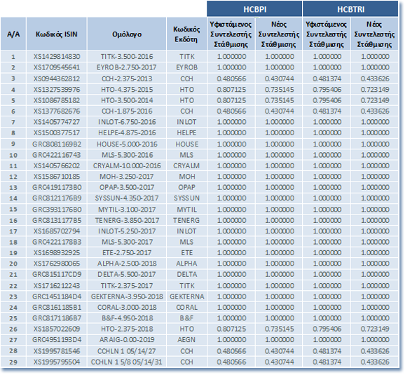 | Αλλαγές στη Σύνθεση των Δεικτών Ελληνικών Εταιρικών Ομολόγων | |||