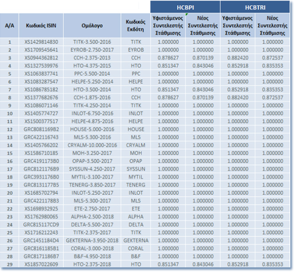 | Αλλαγές στη Σύνθεση των Δεικτών Ελληνικών Εταιρικών Ομολόγων | |||