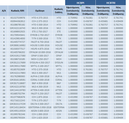 | Αλλαγές στη Σύνθεση των Δεικτών Ελληνικών Εταιρικών Ομολόγων | |||