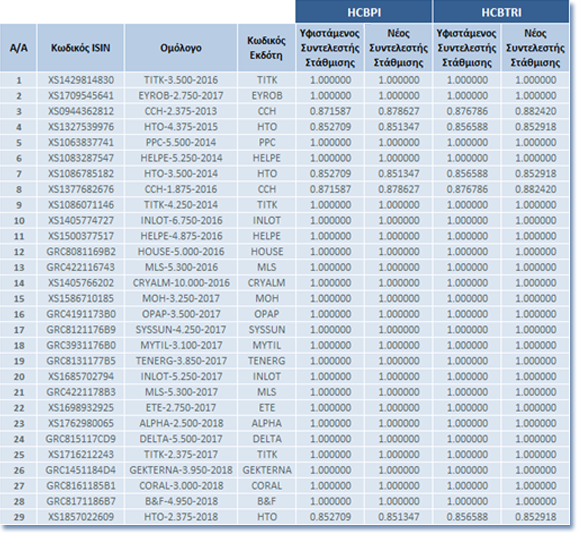 | Αλλαγές στη Σύνθεση των Δεικτών Ελληνικών Εταιρικών Ομολόγων | |||