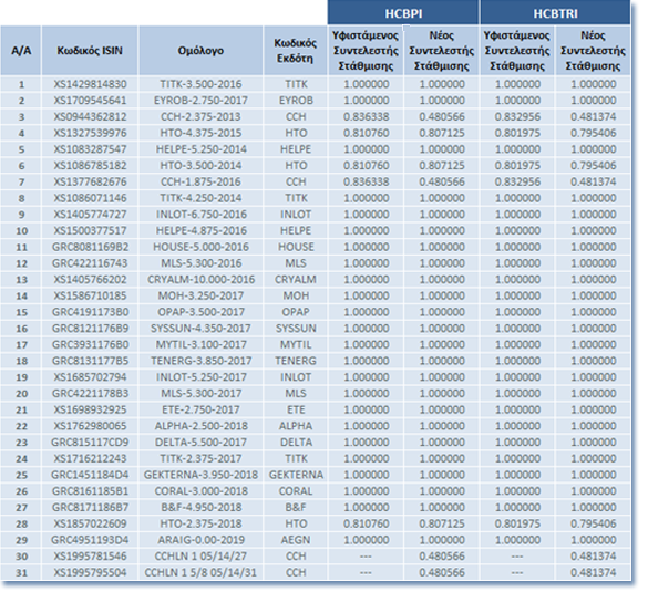 | Αλλαγές στη Σύνθεση των Δεικτών Ελληνικών Εταιρικών Ομολόγων | |||