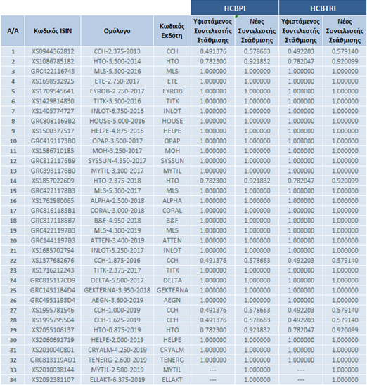 | Αλλαγές στη Σύνθεση των Δεικτών Ελληνικών Εταιρικών Ομολόγων | |||