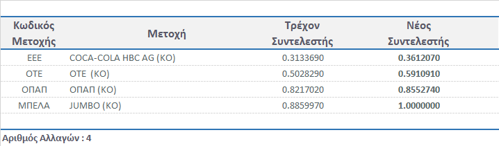 Συντελεστές Στάθμισης Μετοχών στη Σύνθεση των Δεικτών FTSE/Χ.Α