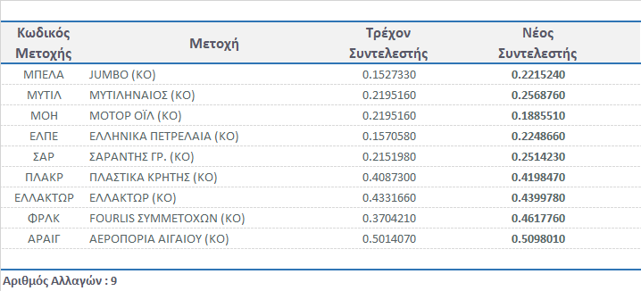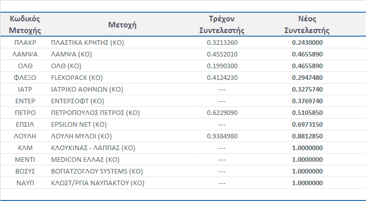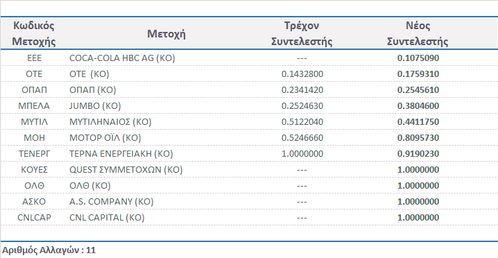| Συντελεστές Στάθμισης Μετοχών στη Σύνθεση των Δεικτών FTSE/Χ.Α. | |||