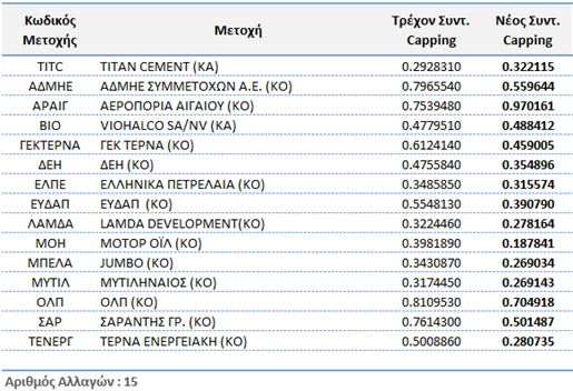 Από τη συνεδρίαση της Δευτέρας 22 Ιουνίου 2020 θα ισχύσουν οι αλλαγές στην σύνθεση του δείκτη στο πλαίσιο της τακτικής εξαμηνιαίας αναθεώρησής του.