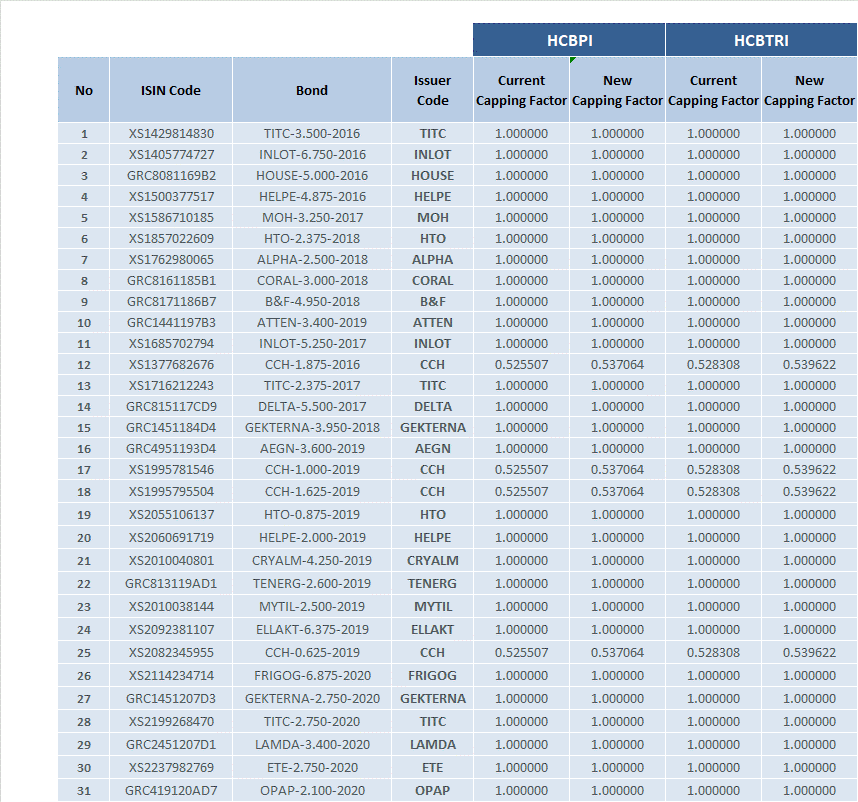 Το Χρηματιστήριο Αθηνών ανακοινώνει αλλαγές στη σύνθεση των δεικτών «Ελληνικών Εταιρικών Ομολόγων» σύμφωνα με τους Βασικούς Κανόνες: