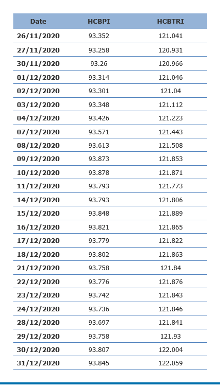 Οι τιμές των Δεικτών Ελληνικών Εταιρικών Ομολόγων για το διάστημα 26/11/20 - 31/12/20, είναι οι ακόλουθες: