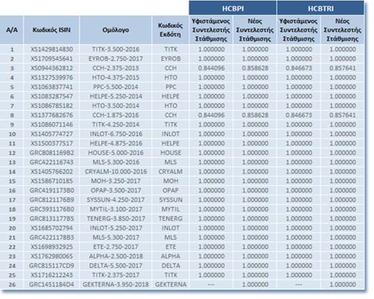 | Αλλαγές στη Σύνθεση των Δεικτών Ελληνικών Εταιρικών Ομολόγων | |||