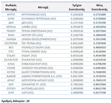 - Αλλαγές Συντελεστών Στάθμισης (Capping Factors)