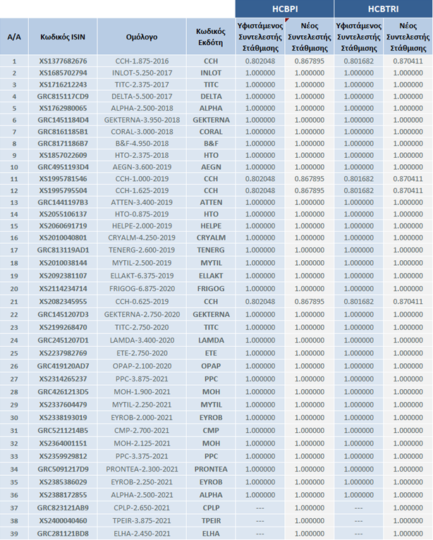 | Αλλαγές στη Σύνθεση των Δεικτών Ελληνικών Εταιρικών Ομολόγων | |||