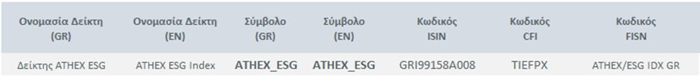 | Χαρακτηριστικά - Μεθοδολογία - Σύνθεση Δείκτη ATHEX ESG | |||