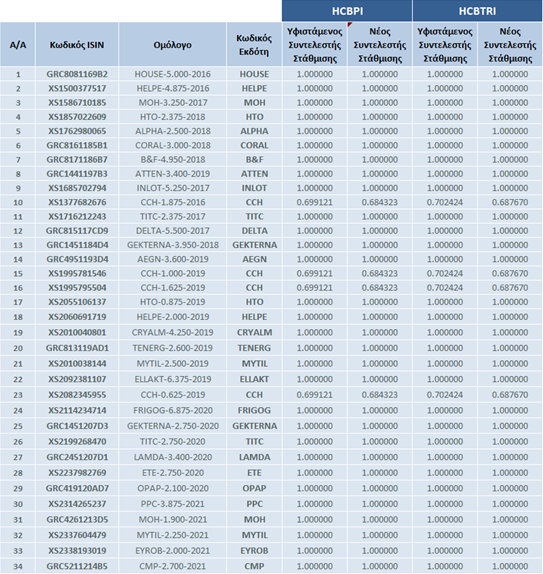 Το Χρηματιστήριο Αθηνών ανακοινώνει αλλαγές στη σύνθεση των δεικτών «Ελληνικών Εταιρικών Ομολόγων» σύμφωνα με τους Βασικούς Κανόνες.