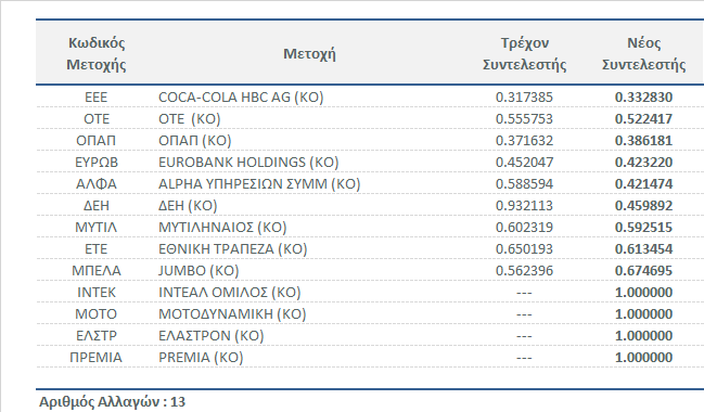 | Υπολογισμός Συντελεστών Στάθμισης της σύνθεσης των Δεικτών της Αγοράς Μετοχών X.A. | |||