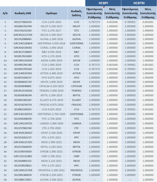 | Αλλαγές στη Σύνθεση των Δεικτών Ελληνικών Εταιρικών Ομολόγων | |||