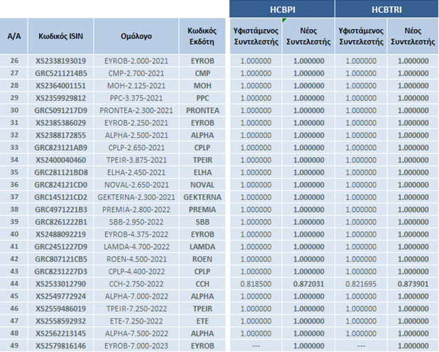 | Αλλαγές στη Σύνθεση των Δεικτών Ελληνικών Εταιρικών Ομολόγων | |||