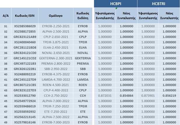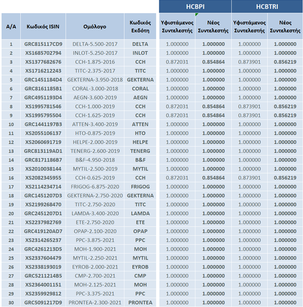 | Αλλαγές στη Σύνθεση των Δεικτών Ελληνικών Εταιρικών Ομολόγων | |||