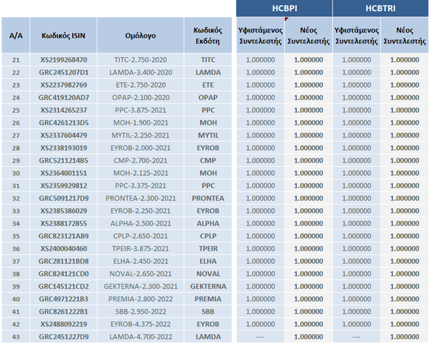 | Αλλαγές στη Σύνθεση των Δεικτών Ελληνικών Εταιρικών Ομολόγων | |||