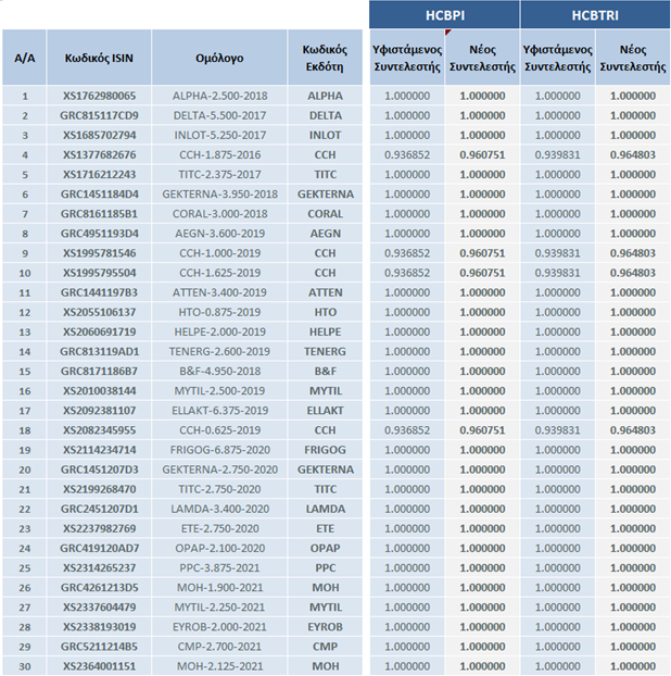 Το Χρηματιστήριο Αθηνών ανακοινώνει τους νέους συντελεστές στάθμισης των ομολόγων της σύνθεσης των δεικτών «Ελληνικών Εταιρικών Ομολόγων».