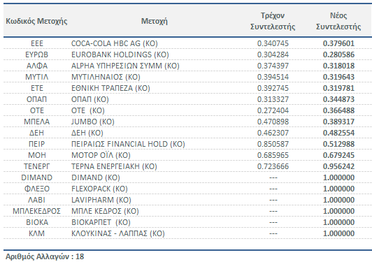 | Δείκτες Χ.Α. - Νέοι Συντελεστές Στάθμισης Μετοχών | |||