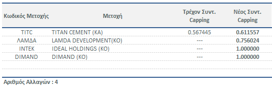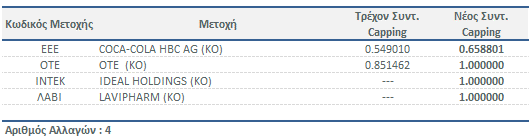 Δείκτες Χ.Α. - Νέοι Συντελεστές Στάθμισης Μετοχών